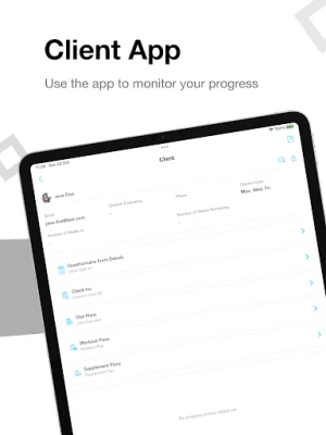 - Weekly check ins - Client/Coach communication - Exercise library - Education portal and much more