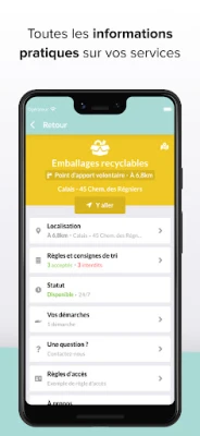 L’application vous donne les règles et consignes de tri pour le verre, les biodéchets, les ordures ménagères et les emballages et recense les points de collecte les plus proches de vous grâce à la géolocalisation. Vous découvrirez peut-être des lieux où donner, comment opter pour le compostage et que faire des piles, médicaments, etc. Enfin, vous n’aurez plus de doute sur les horaires d’ouverture des déchèteries : la bonne information est dans l’application !